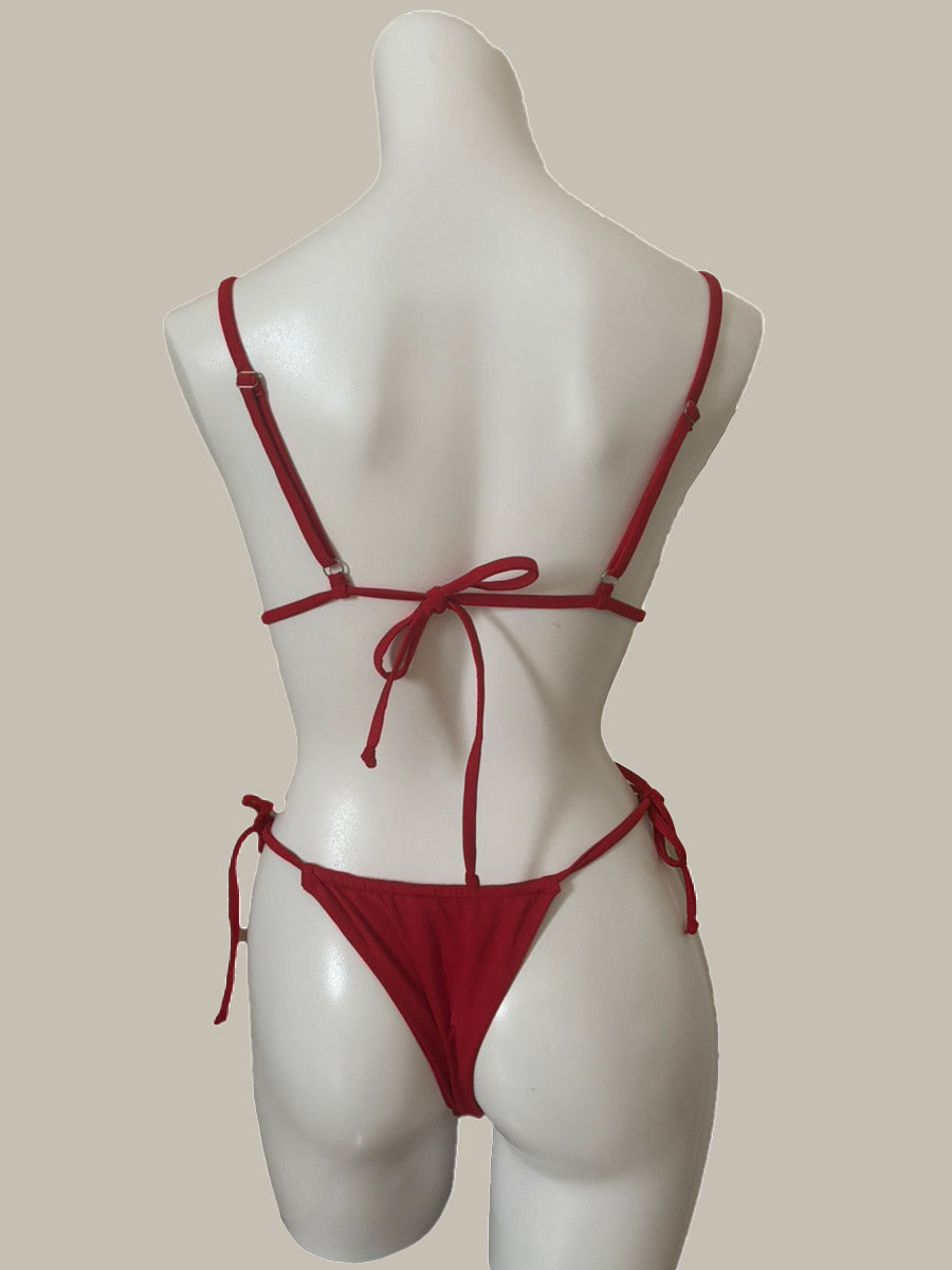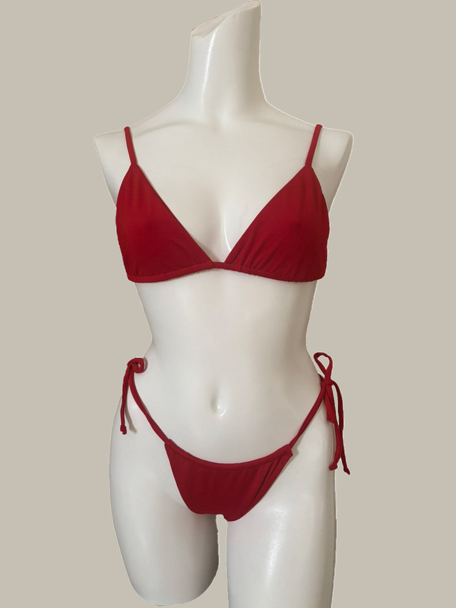 鮮やかなレッドのトライアングルビキニセット。スタイル良く見せてくれます。常に持っておきたい一品です